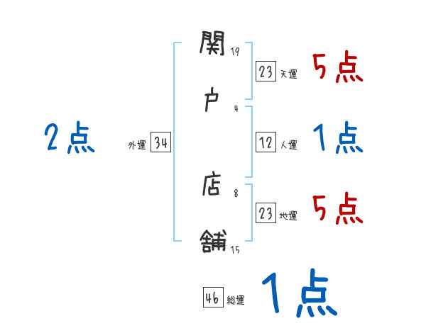 関戸店舗さんの画数の鑑定結果