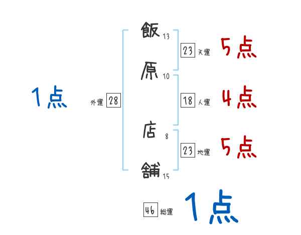 飯原店舗さんの画数の鑑定結果