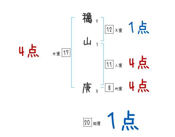 穐山庚さんの画数の鑑定結果