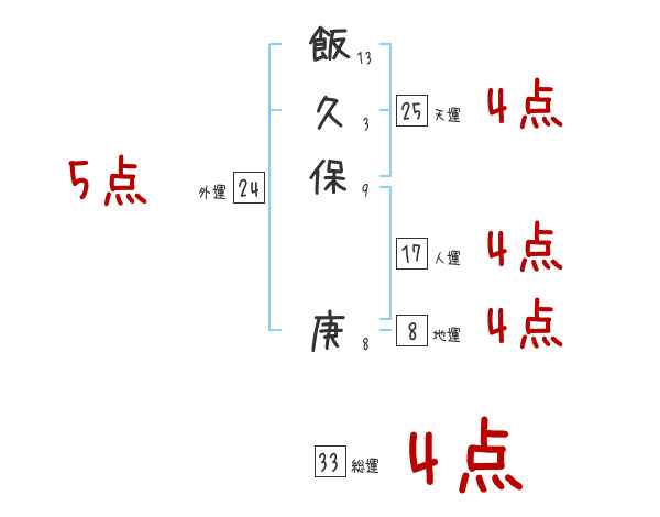 飯久保庚さんの画数の鑑定結果