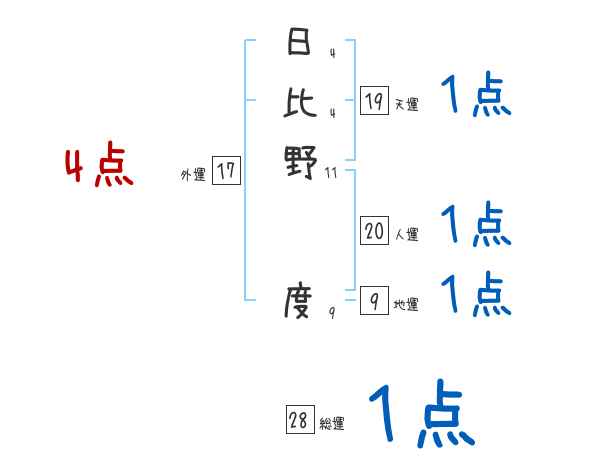 日比野度さんの画数の鑑定結果