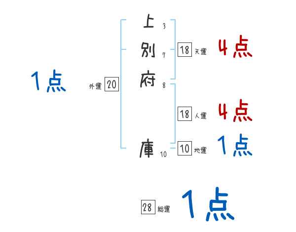 上別府庫さんの画数の鑑定結果