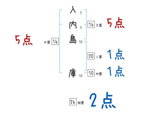 天運![]() | 入内島庫さんの天運は16画の5つ星!人望が厚く大きく発展する。逆転成功が見える。 家系が持つ宿命的な運勢を表します。祖先から受け継いだ苗字ですので自分の力が及びません。家柄を象徴します。 |