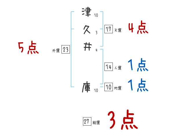 津久井庫さんの画数の鑑定結果