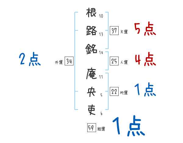 根路銘庵央吏さんの画数の鑑定結果