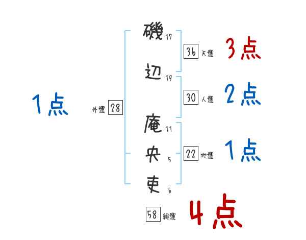 家系が持つ宿命的な運勢を表します。祖先から受け継いだ苗字ですので自分の力が及びません。家柄を象徴します。