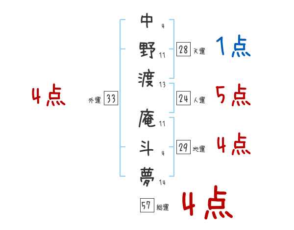 中野渡庵斗夢さんの画数の鑑定結果