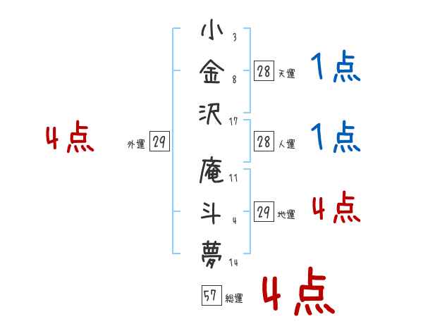 小金沢庵斗夢さんの画数の鑑定結果