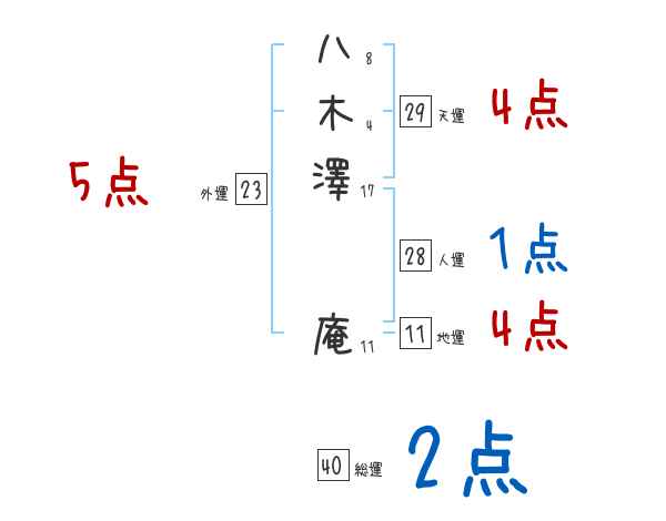 八木澤庵さんの画数の鑑定結果