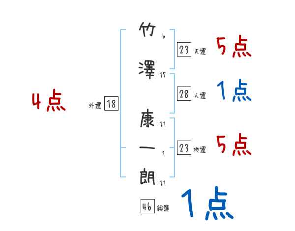 竹澤康一朗さんの画数の鑑定結果
