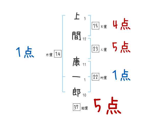 上間康一郎さんの画数の鑑定結果
