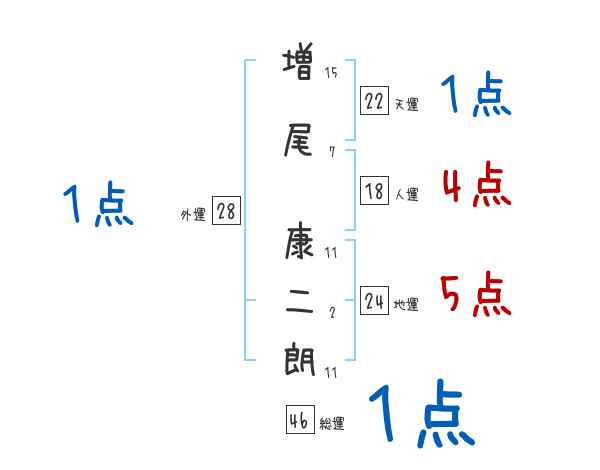 増尾康二朗さんの画数の鑑定結果