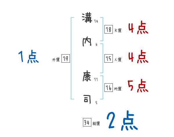 溝内康司さんの画数の鑑定結果