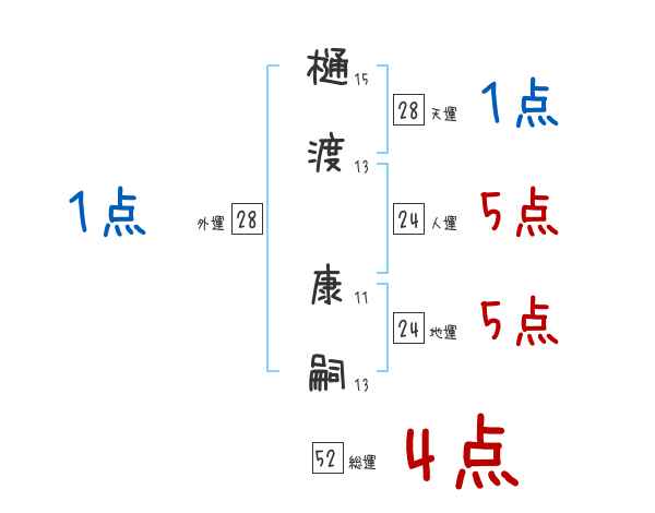 樋渡康嗣さんの画数の鑑定結果