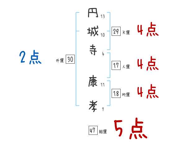 円城寺康孝さんの画数の鑑定結果