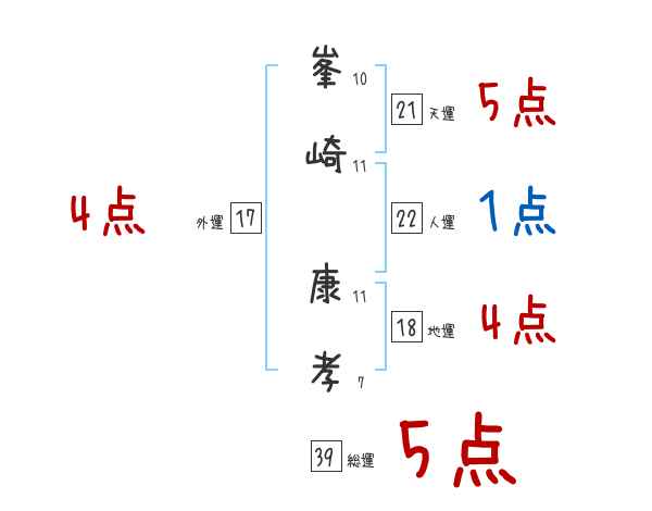 峯崎康孝さんの画数の鑑定結果