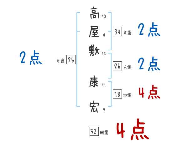 高屋敷康宏さんの画数の鑑定結果