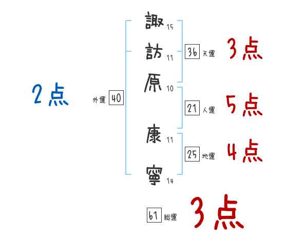 諏訪原康寧さんの画数の鑑定結果