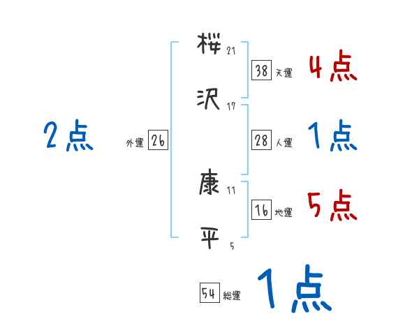 桜沢康平さんの画数の鑑定結果