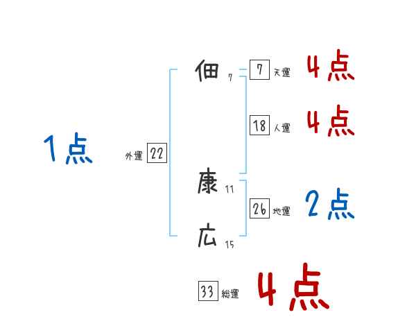 佃康広さんの画数の鑑定結果