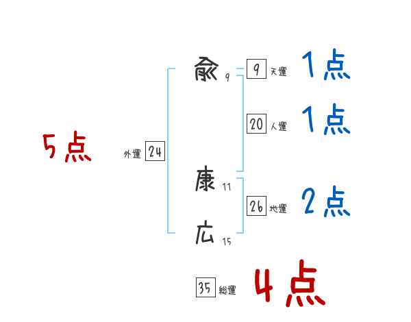 兪康広さんの画数の鑑定結果