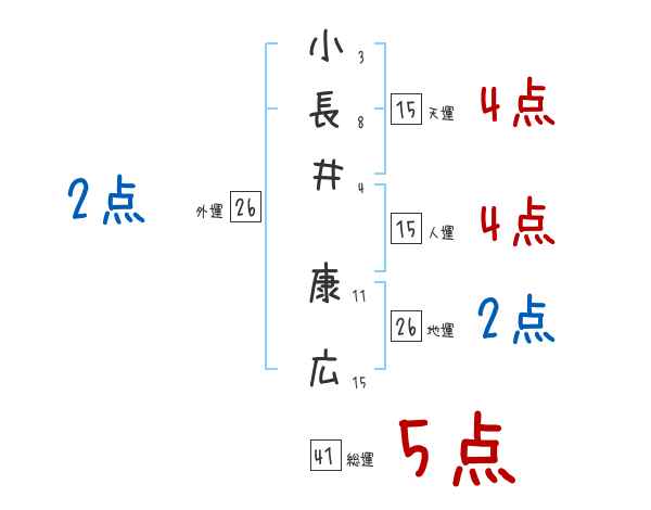 人運![]() | 小長井康広さんの人運は15画の4つ星!人徳があり出世する。順調に物事を進め円満な人生。 性格や才能などを表す2番目に重要な運勢です。人間関係や協調性、社会的な成功に影響します。主に20歳から50歳ぐらいまでの中年期の運勢を表します。 |