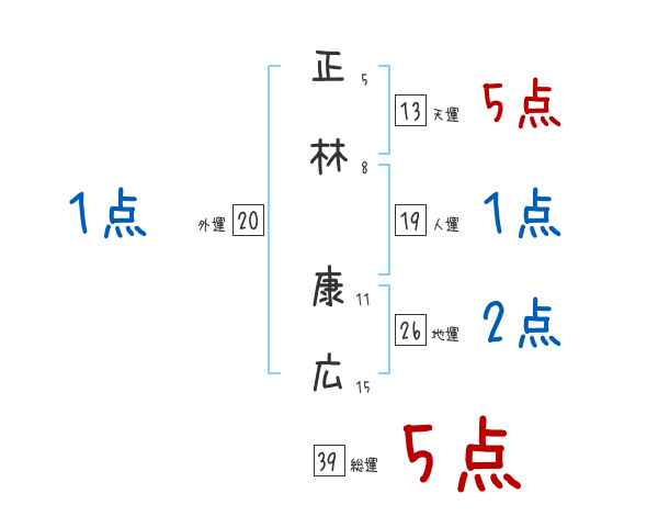 正林康広さんの画数の鑑定結果