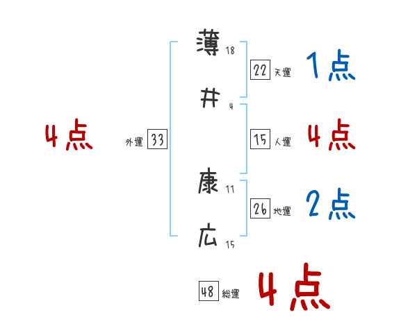 薄井康広さんの画数の鑑定結果