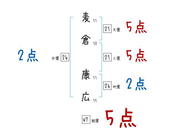 麦倉康広さんの画数の鑑定結果