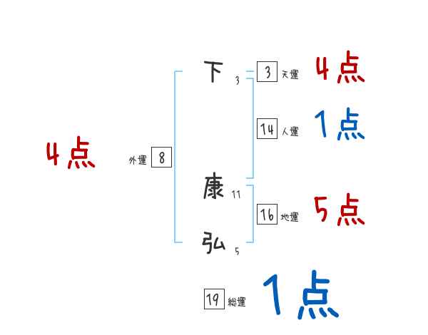下康弘さんの画数の鑑定結果