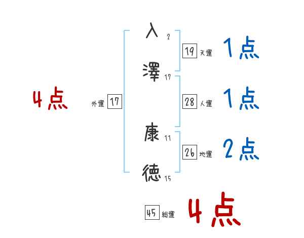 入澤康徳さんの画数の鑑定結果