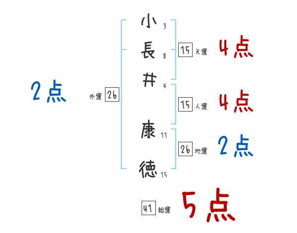 小長井康徳さんの画数の鑑定結果