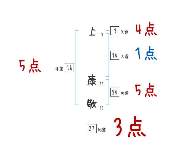 上康敬さんの画数の鑑定結果