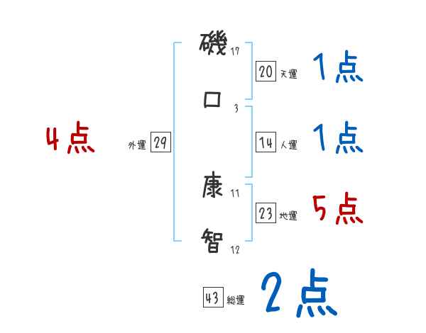 磯口康智さんの画数の鑑定結果