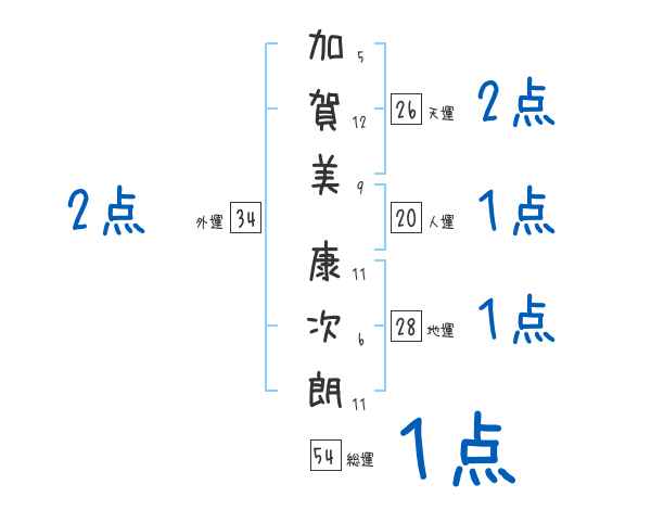 加賀美康次朗さんの画数の鑑定結果