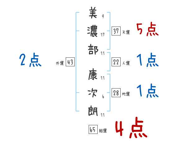 総運![]() | 美濃部康次朗さんの総運は65画の4つ星!幸運に恵まれ繁栄する。包容力がある。 あなたの人生を表す1番重要な運勢です。生涯を通じて影響する総合運となり、主に50歳以降の晩年期に影響を及ぼします。 |