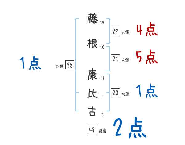 藤根康比古さんの画数の鑑定結果