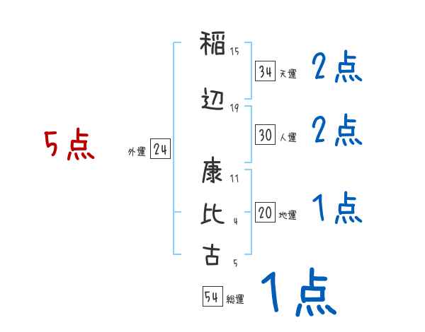 稲辺康比古さんの画数の鑑定結果