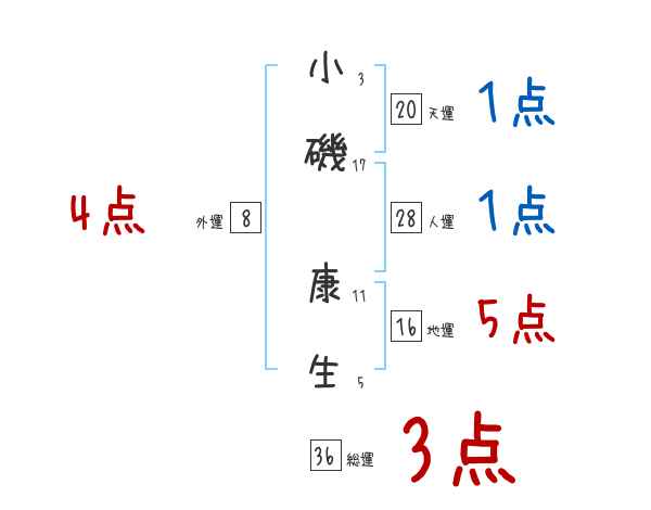 小磯康生さんの画数の鑑定結果