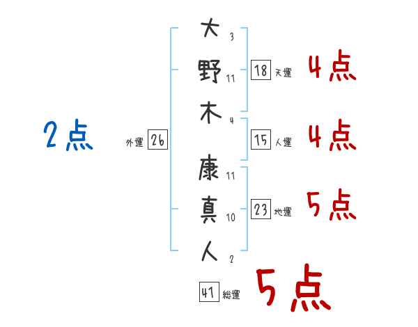 大野木康真人さんの画数の鑑定結果