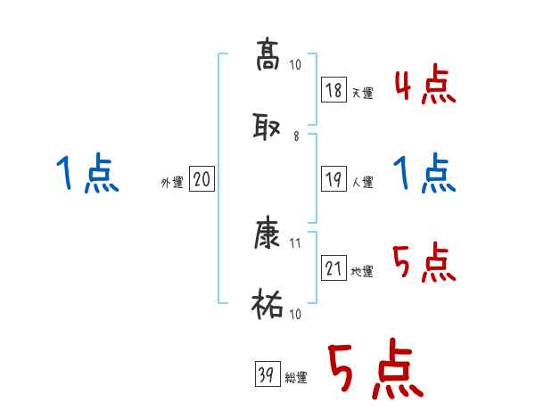 髙取康祐さんの画数の鑑定結果