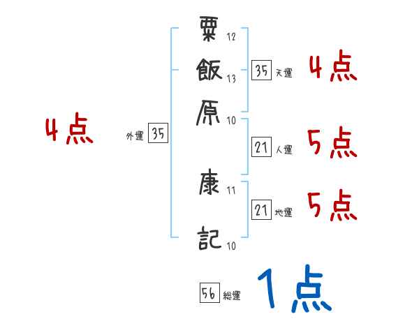 人運![]() | 粟飯原康記さんの人運は21画の5つ星!統率力がある。独立し成功する。名誉を手に入れる。 性格や才能などを表す2番目に重要な運勢です。人間関係や協調性、社会的な成功に影響します。主に20歳から50歳ぐらいまでの中年期の運勢を表します。 |