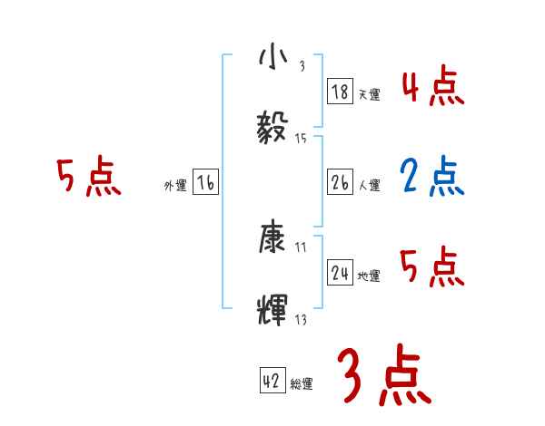 小毅康輝さんの画数の鑑定結果
