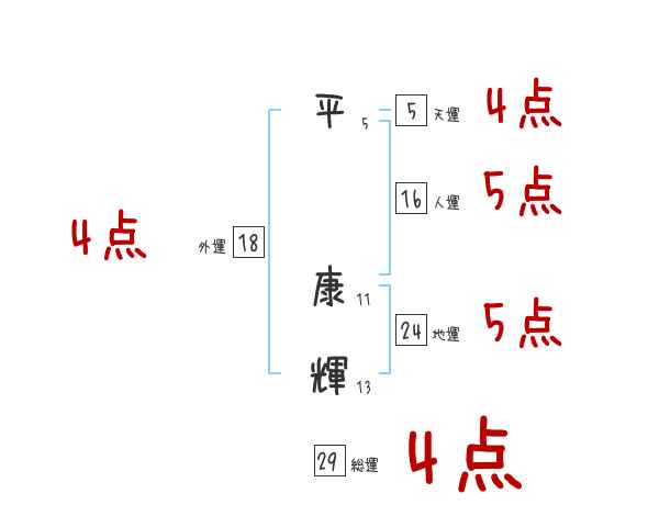 平康輝さんの画数の鑑定結果