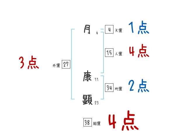 天運![]() | 月康顕さんの天運は4画の1つ星!感情が不安定で苦労するかも。周囲との協調を心掛けましょう。 家系が持つ宿命的な運勢を表します。祖先から受け継いだ苗字ですので自分の力が及びません。家柄を象徴します。 |