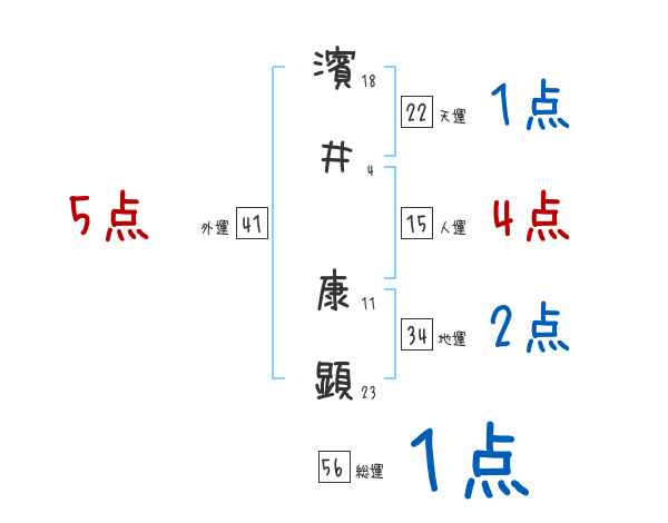外運![]() | 濱井康顕さんの外運は41画の5つ星!大志を抱き、目標に向かって実力を発揮し達成する。温和な性格。 生活面を象徴する運勢です。外部から受ける影響力を表し、結婚運、家庭運や職場、環境への順応性を表します。 |