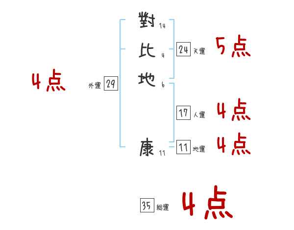 對比地康さんの画数の鑑定結果