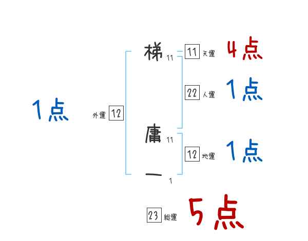 梯庸一さんの画数の鑑定結果
