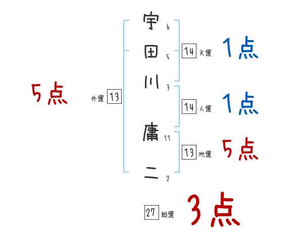 宇田川庸二さんの画数の鑑定結果