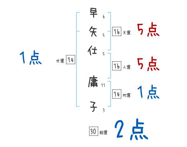 人運![]() | 早矢仕庸子さんの人運は16画の5つ星!人望が厚く大きく発展する。逆転成功が見える。 性格や才能などを表す2番目に重要な運勢です。人間関係や協調性、社会的な成功に影響します。主に20歳から50歳ぐらいまでの中年期の運勢を表します。 |